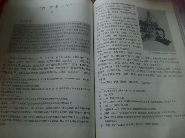 语文老师正在讲解鲁迅的《拿来主义》这篇课文。这时,凉情捅了捅一旁的沉笙。