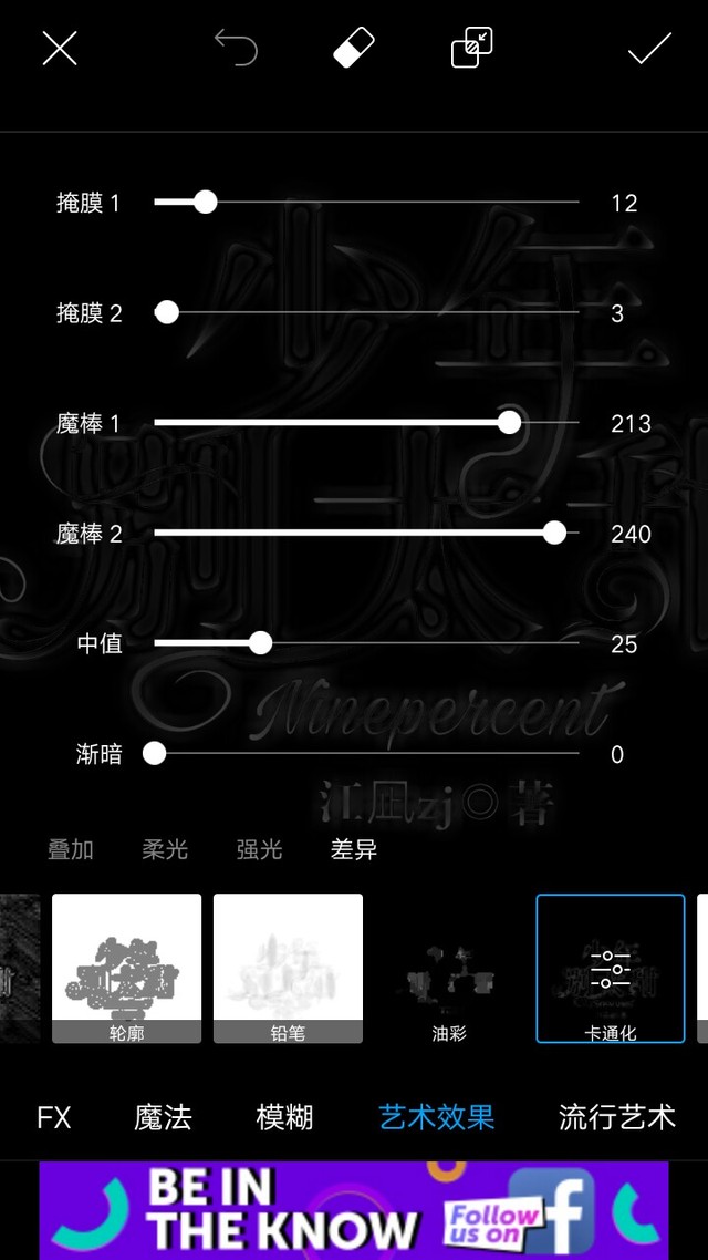 范丞丞冲鸭!效果,艺术效果,卡通化,模式为差异,数值如图