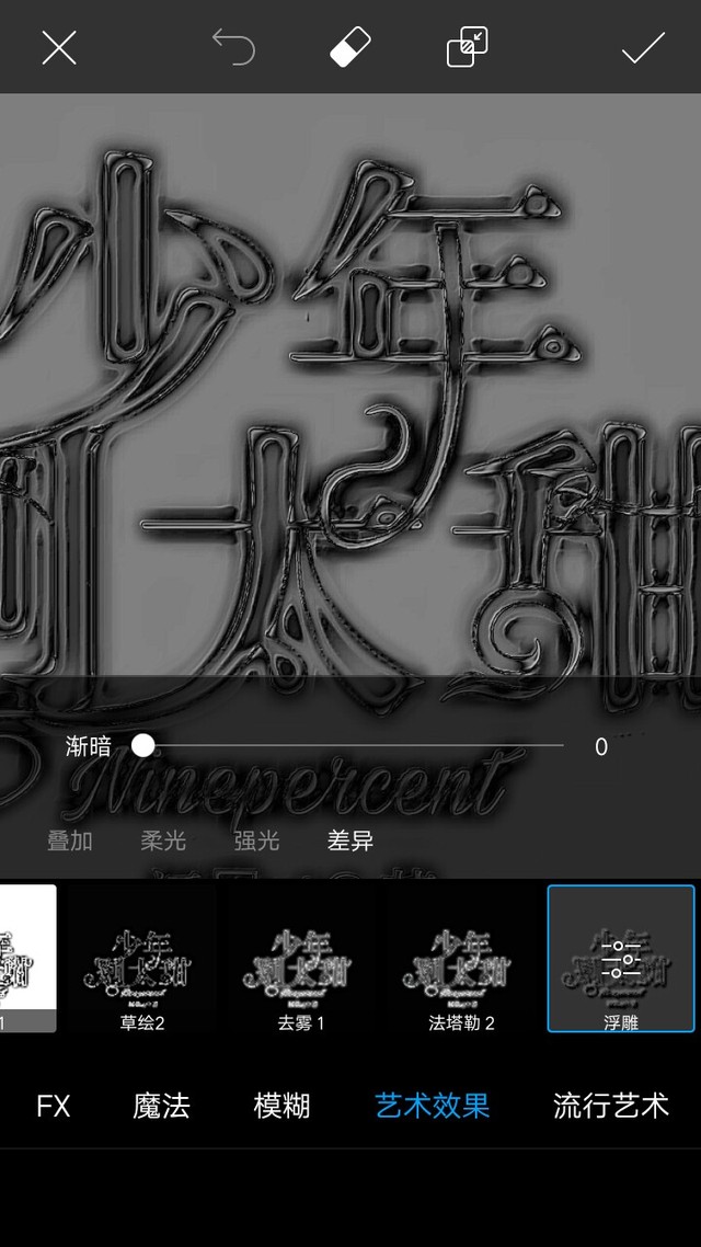 范丞丞冲鸭! 效果,艺术效果,浮雕,模式为差异,数值如图