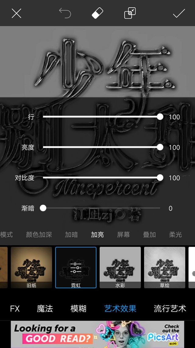 范丞丞冲鸭! 效果,艺术效果,霓虹,模式为加亮,数值如图