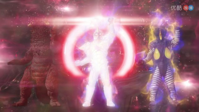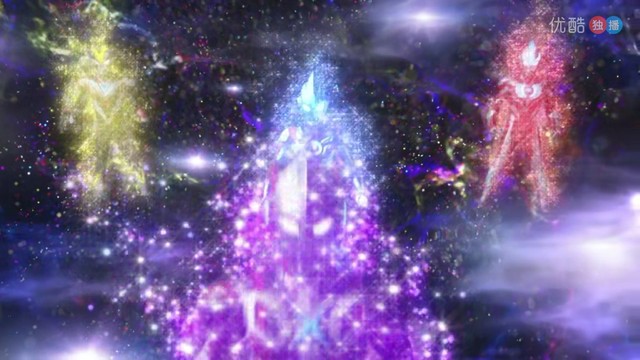 艾克斯奥特曼也闪了一下,突然维克特利、银河、艾克斯化成一道光进入了红凯的欧布圆环里