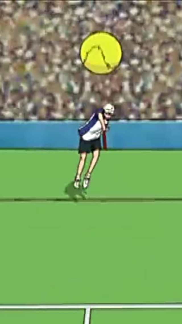 下一球,球划过对面的场内,当他想接的时候,球在接触地面的时候向内弹出,飞回笙离的手中。