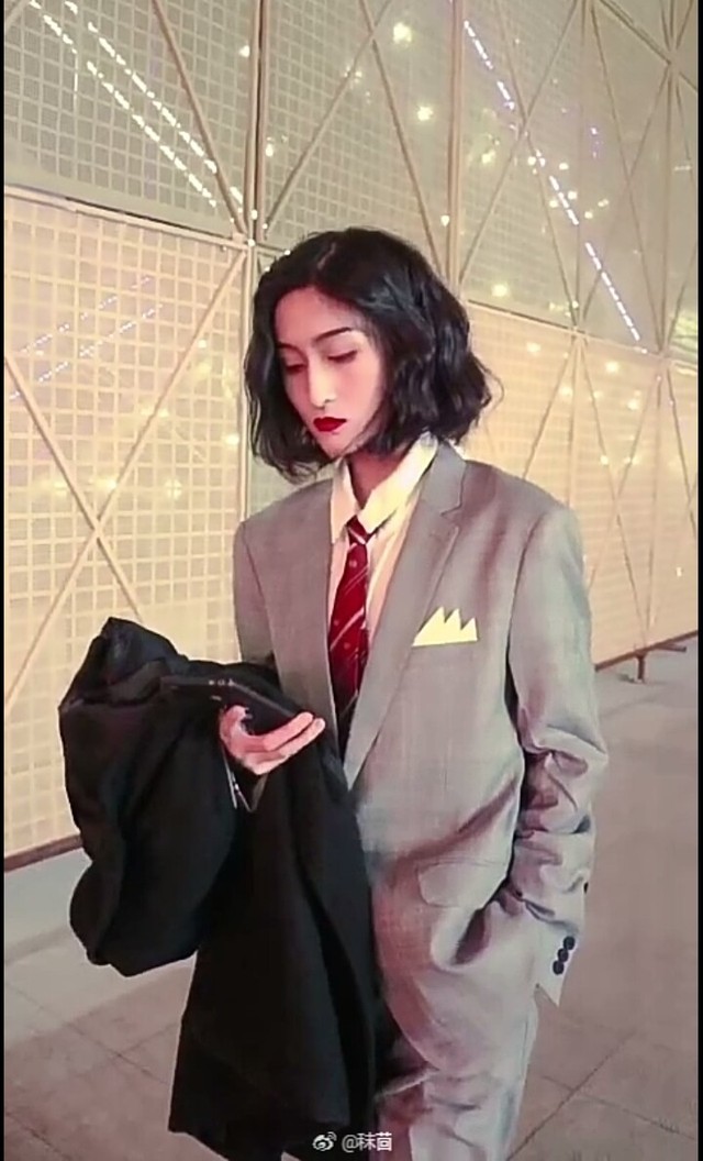 换上了帅气的西装,