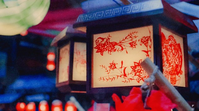 才将将入夜,小厮们爬上梯子,举着细长的竹竿子将一盏盏的红灯笼挂上高处。