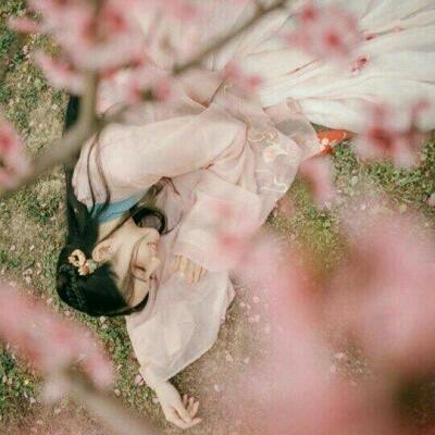 她躺在樱花树下