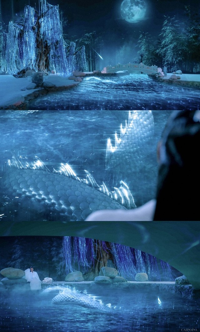 当無涣进入最后一个洞口时,她发现她来到了一个自己熟悉的地方——丞星山,而眼下的场面便是自己小时候与那条大白龙初遇的湖边。