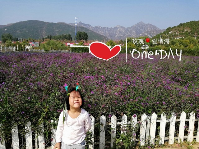 远处,是花海无尽。一个小女孩笑盈盈地站在白色的栅栏前,可爱动人(๑•.•๑)。