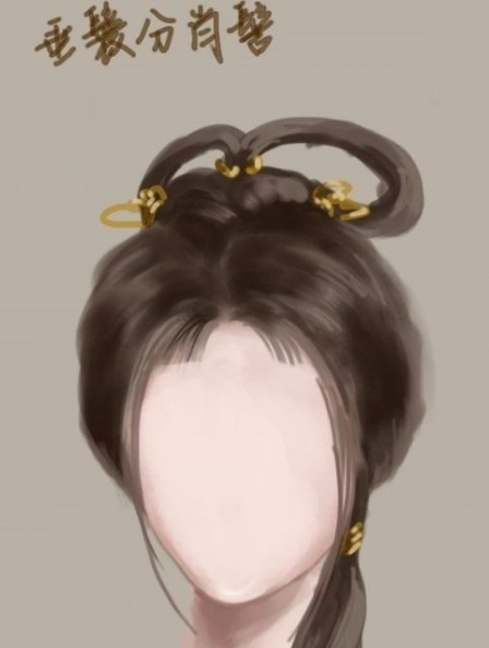 随后发型师按照叶一洛的描述,将头发分股,结鬟于顶,不用托拄,使其自然垂下,并束结髾尾、垂于肩上。