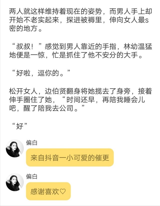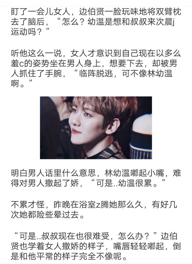 第二天,边伯贤早早醒了,盯着旁边的小女人好长时间,突然就起了玩意,修长的手指慢慢靠近女人,随后捏住了女人的鼻子,不一会儿,女人呼吸不通,小脸微红,猛地挣开了眼睛,“唔...叔叔!”