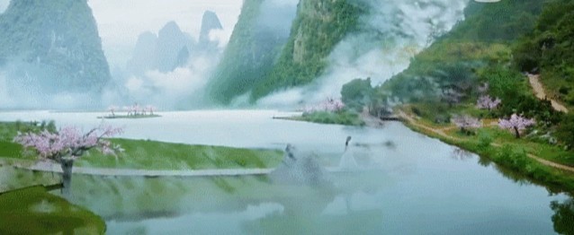 白浅调皮的样子惹得冰璃雪轻笑,青峰山峦延绵不绝,小桥流水,桃花盛开,即使是这样美的景色,似乎也为那一笑做了衬托。