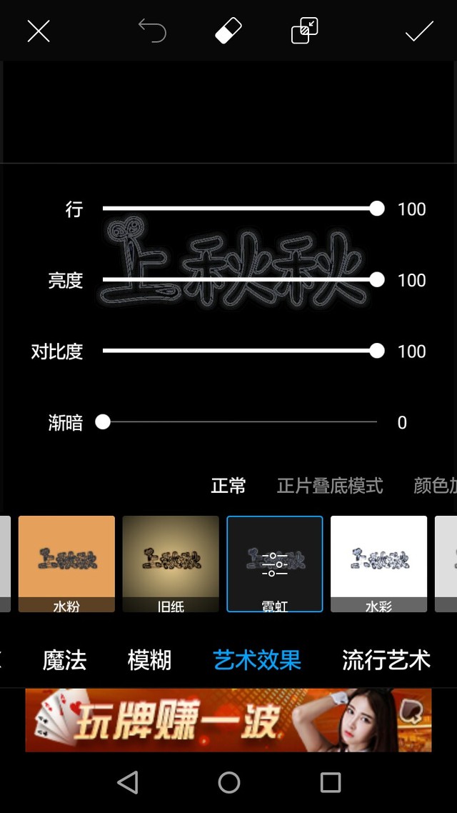 正经秋然后,特效--艺术效果--霓虹。数值如图。
