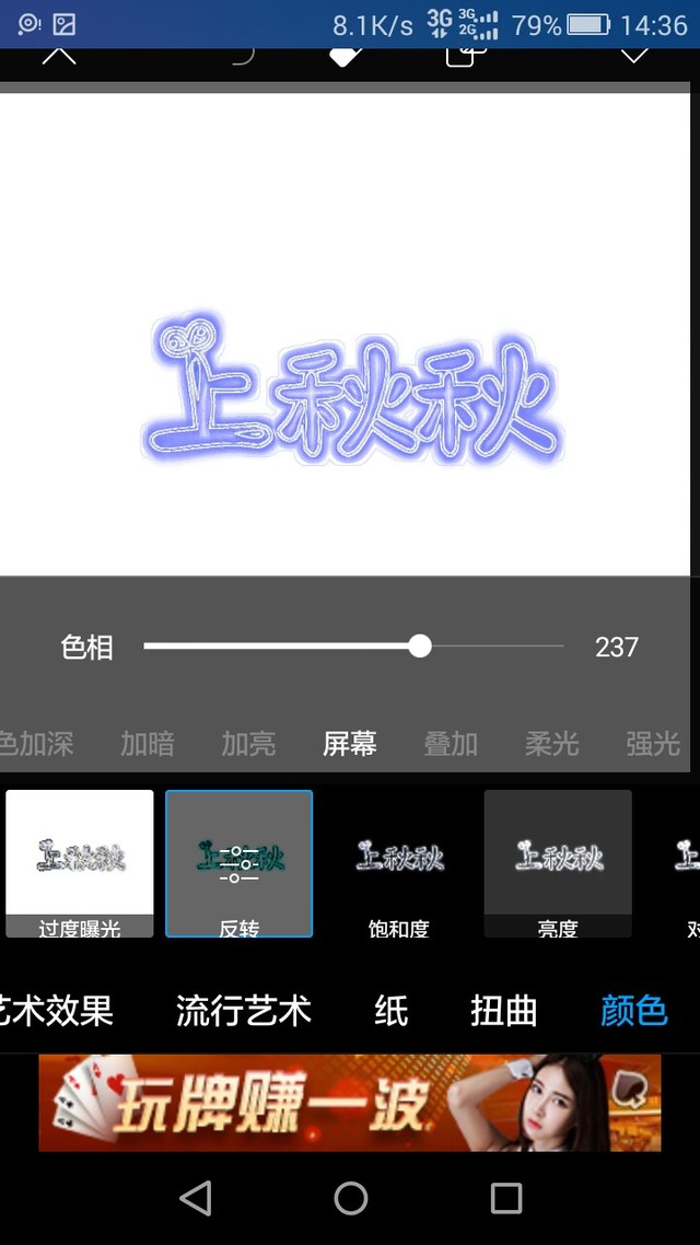正经秋第5步,特效--顔色--反转--屏幕。色相随意。