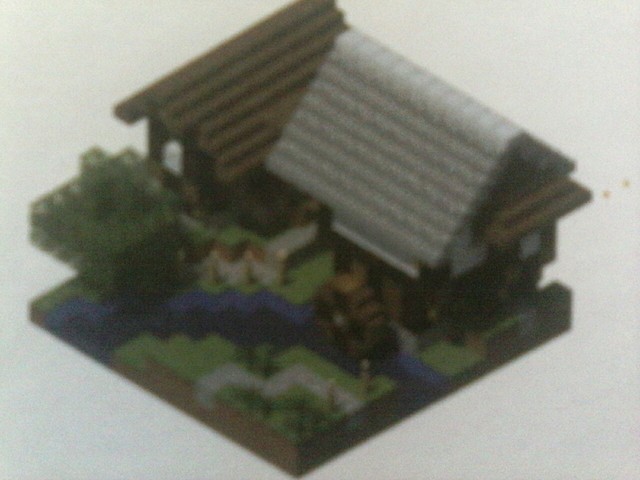 提示1河流和湖泊流经大多数生物群系,并且可以为你的建筑增加生趣,这台简易的水车架设在穿过村庄的小河边,看上去为妙惟肖。