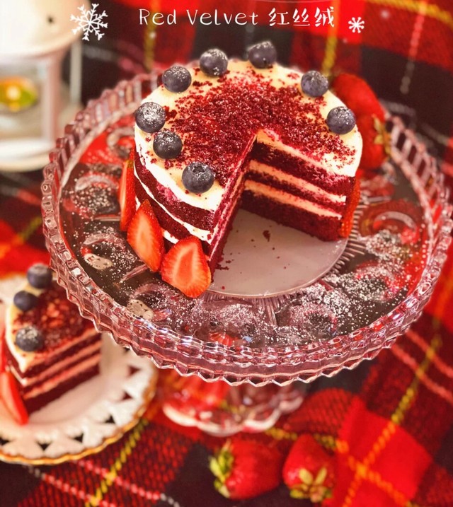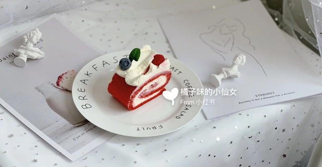 一款是红丝绒的水果蛋糕,另一款则是蛋糕卷