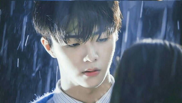 陈立农一路上虽是带了伞,但是还是想快点找到边玄恬所以并没有撑开伞.