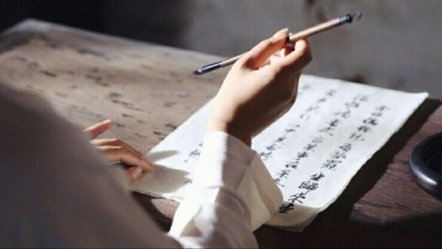 穗禾一边听,一边用毛笔在纸上写。