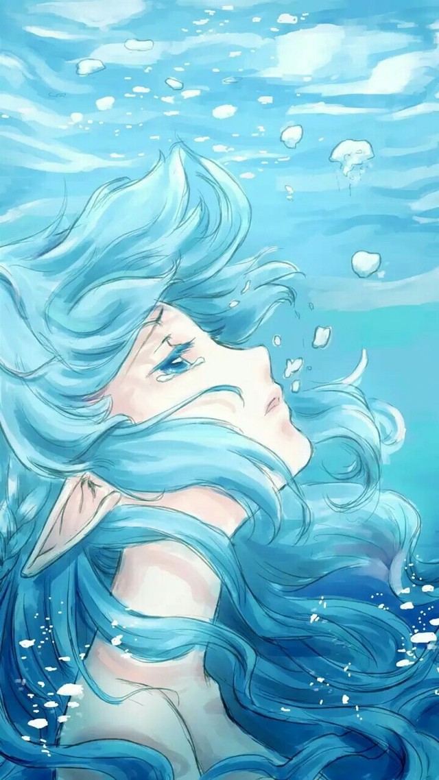 她很惊异地发现自己一碰到海水,双腿就变成了鱼尾