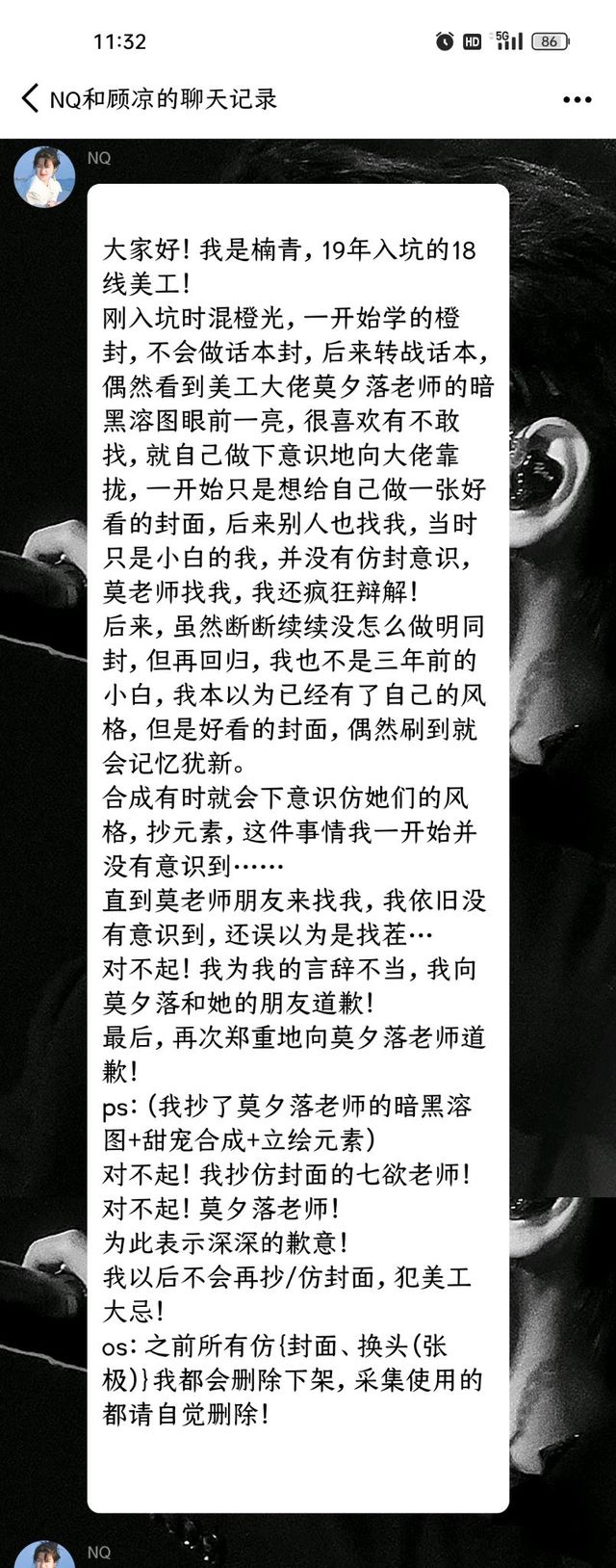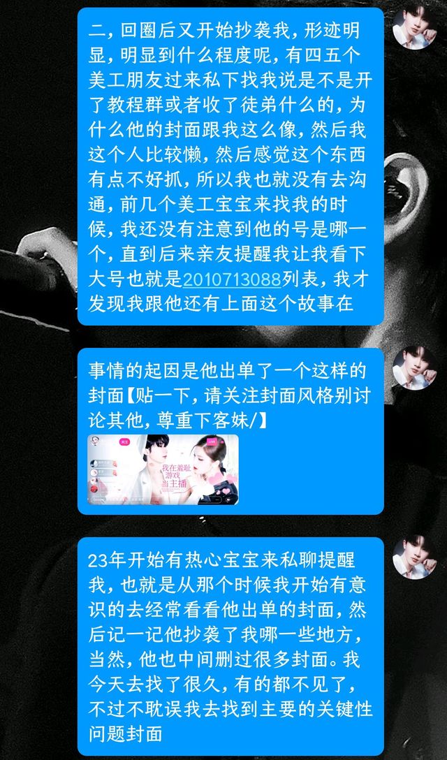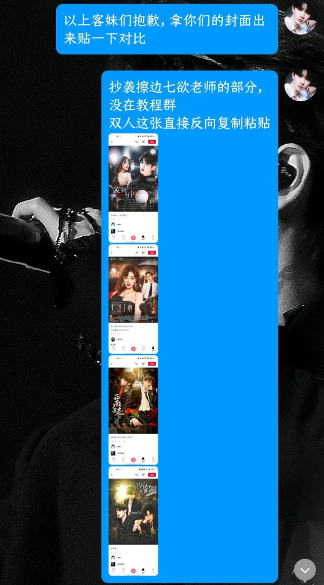 落落关于美工楠青抄袭我和七欲老师 【对方承认了抄袭为事实,花瓣,空间,话本铺也均发布了道歉】 总结→①抄我没有意义,动自己的脑子。别把旁人当傻子。【而且我经好几位热心宝宝提醒后,从去年就注意了的】 ②抄袭终归是抄袭,塌房是他自己早该想到的,别存什么侥幸心理【对,也在说某些仿/擦我的,请听进去】 ③我封面贵我自知,合成单人打底一小时半起步还不包括找素材的时间,所以我觉得价格合理,请别找这种一眼抄袭的下头美工下单 下图均为大概,具体见匿四扒人部分 最后贴的是七欲老师的声明以及楠青她本人的空间,她设了部分可见/随便吧可能有现在什么的不方便公开我也不强求了 恩,别抄仿擦我了,用点自己脑子