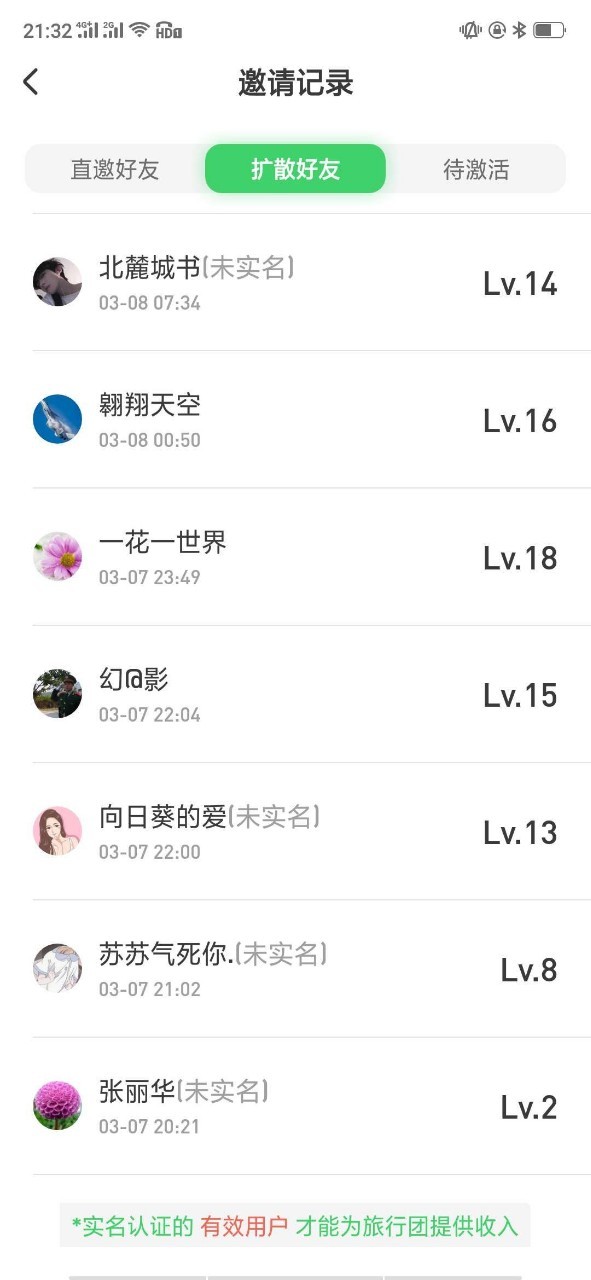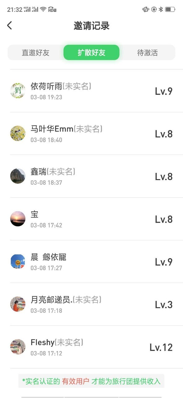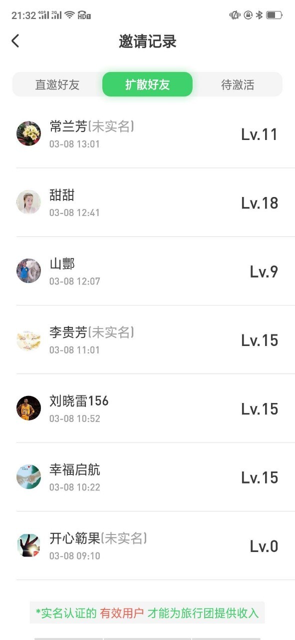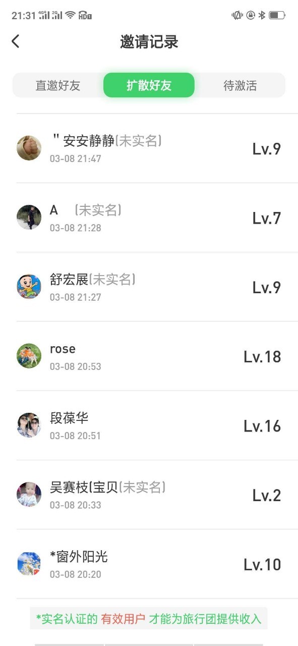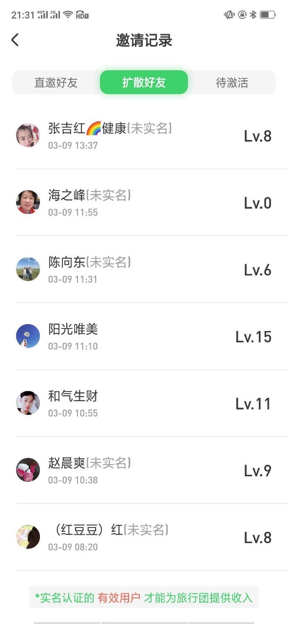 大家看看哪个是自己邀请的,还没实名的,提醒朋友去实名认证