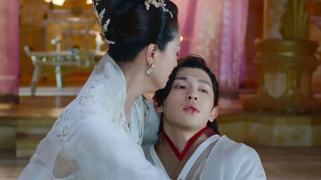 旭凤向母后承认锦月已经有了自己的骨血,帝后听了更是生气,骂锦月不知廉耻,要将锦月和他的骨血一起焚了。她狠狠的将旭凤甩到一边,再次使出了强大的能力,却被赶来的润玉挡在了身前。就在帝后气急败坏地准备再次出招时,水神与天帝及时赶到制止了她的行为。水神盛怒之下对帝后使出了致命法术,旭凤却挡在了帝后身前挨下了这一掌,弥留之际的旭凤求水神饶帝后一命,天帝这才知道原来当年先花神是自己枕边人害死的。得知真相的天帝将天后押入毗娑牢狱,削去后位,永生不得再入仙籍。