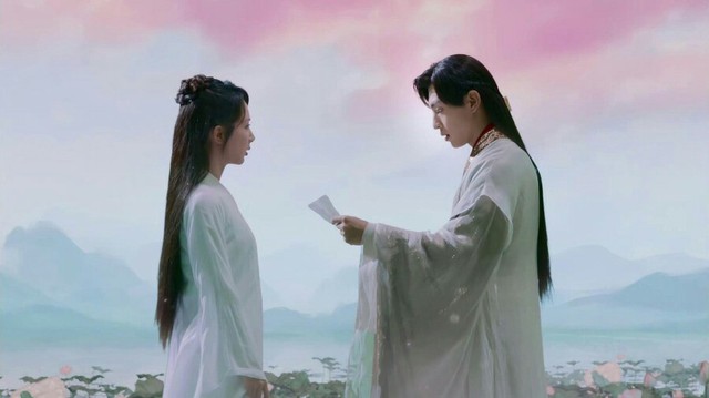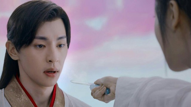 旭凤来到花界和锦月一起祭拜二位仙上,锦月询问旭凤调查进展,旭凤只道此事现场毫无痕迹。锦月拿出信笺问旭凤,为何会在当日见水神,为何水神是被琉璃净火所伤。飞白书是旭凤惯用写法,她拿出冰刃逼问旭凤是不是他杀了自己爹爹。旭凤知道锦月怀疑自己很难过,他表示此事一定有人嫁祸于他。旭凤还表示如果不相信的话,他这条命随时可以拿去。锦月听后拿着刀的手慢慢放下,她实在对旭凤下不了手,她不想要旭凤的命,只想要自己的爹爹能活着。