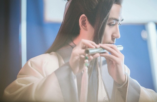 一袭白衣,领子边上一抹蓝,手执一支笛子,放在嘴边轻轻一吹,成千上万的白色蝴蝶飞了过来,缠绕在白灵九身边