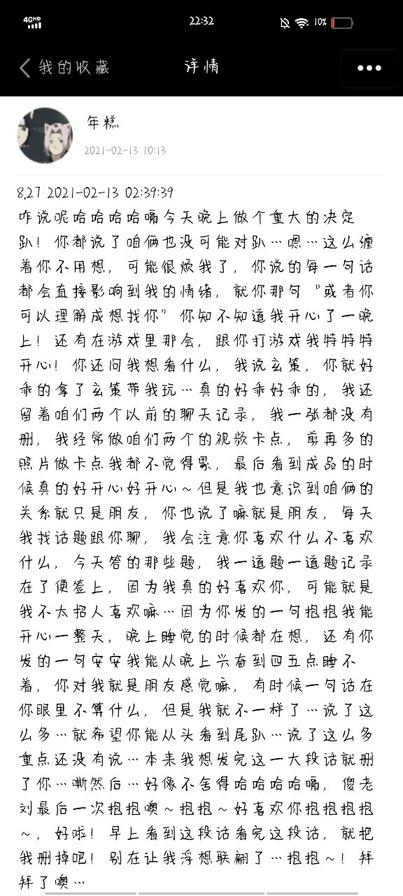 到了过年的时候,他那段时间突然又跟我很亲密主动找我聊天,让我感觉又像回到了当初,过了大年三十,当天晚上他就跟我说他这几天跟我亲密的原因就是,他知道我喜欢他,就想过年这几天让我开心开心