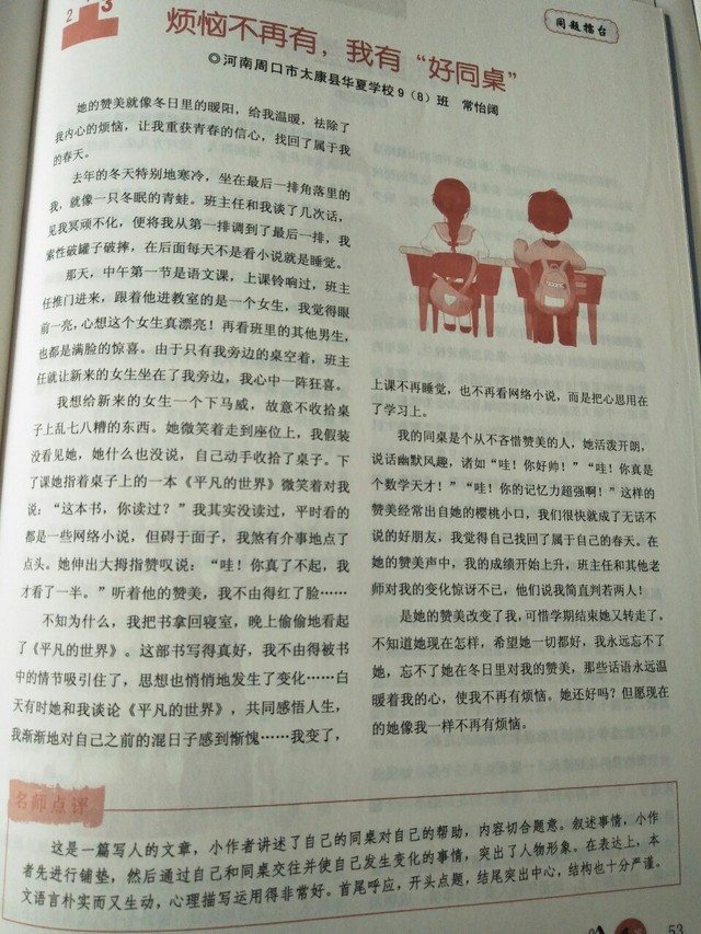 作者题目:烦恼不再有,我有“好同桌”