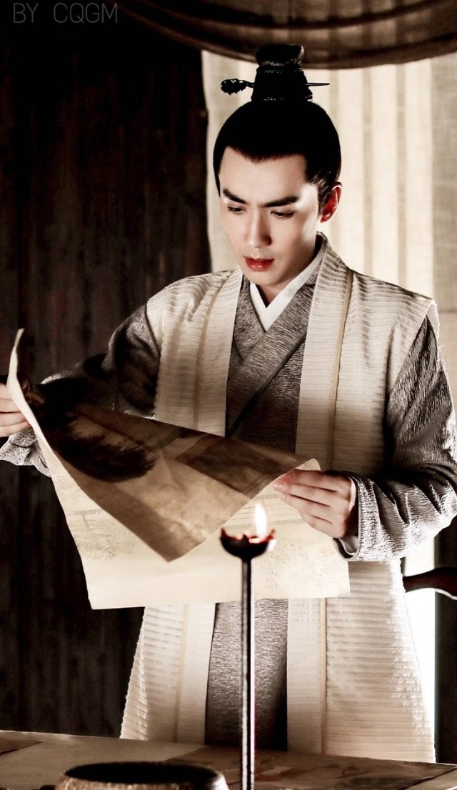 他今日穿了一袭灰色便衣,坐在桌前,提起笔落下最后一笔,放下画笔,吹了吹未干的墨,将画拿在手上看着,满意地笑了笑。