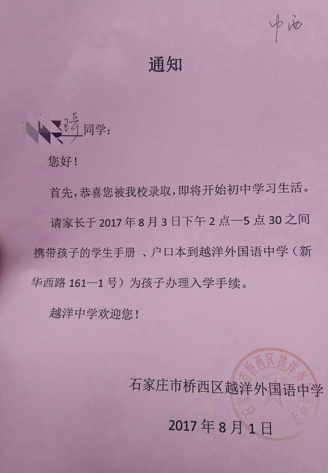 琦琦大大大大被理想的初中录取啦!好开心😊。