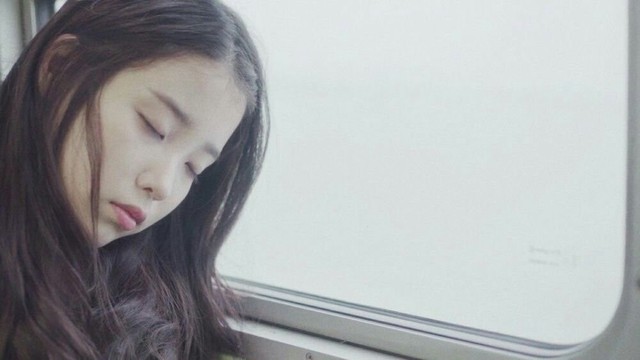 她静静地靠在车窗上,没有任何防备地陷入了沉睡。