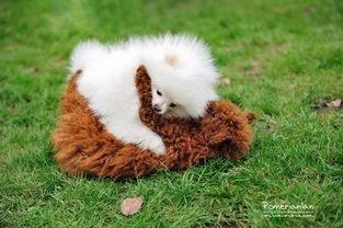 小草坪上一直白色的小博美犬快乐的来回蹦跳着,吐着小舌头样子别提多可爱了