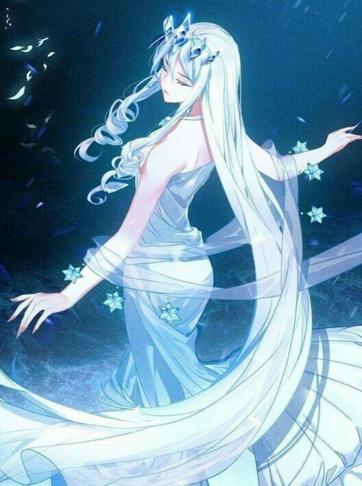 一头银发三千,一袭冰衣缥缈,她本来就属于那里,沐浴在月光之下,仿佛与冰晶川融为一体。