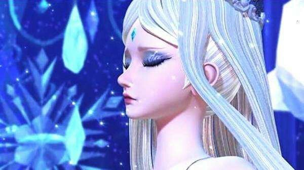 一滴晶莹剔透的冰晶泪在冰璃雪的脸颊上划过湿润的一道泪痕,划破空气,落到地上,绽放出了一朵冰清玉洁的冰莲花。