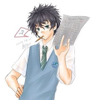 银蓝色头发的筱雨,此刻戴上了黑色的眼镜框——挡桃花用的~~水蓝色的眸子,似笑非笑的看着正在抄写英文单词的海带君。
