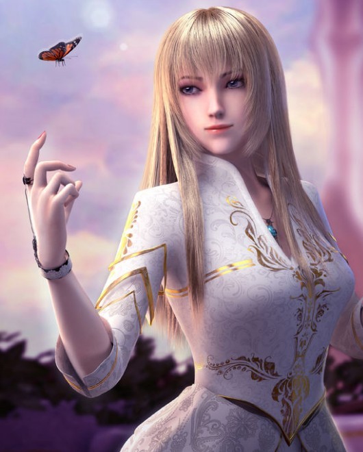 一头淡蓝色头发,洁白如玉的皮肤,鲜艳如血的樱唇,以及瓜子脸。