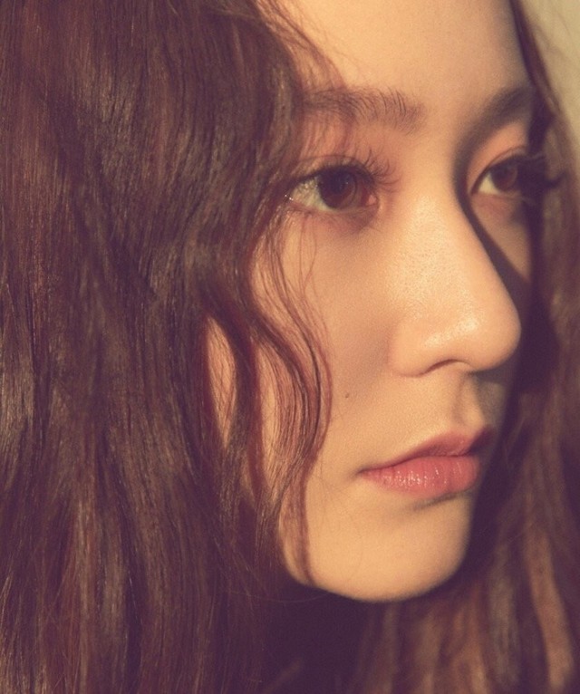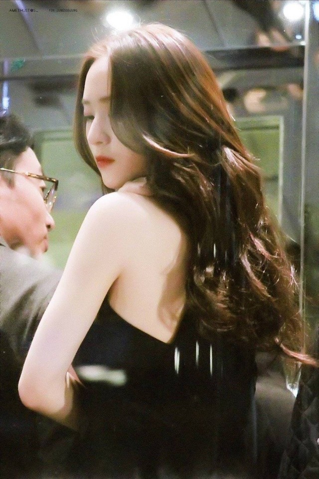 郑秀晶微微低头,精心打理的头发微微下垂,挡住了大半张脸,