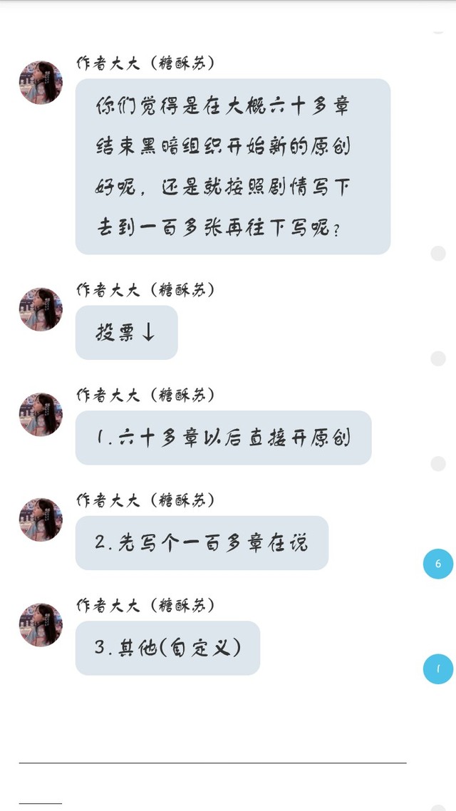 作者大大(糖酥苏)因为之前的投票人数很少,不过投按照原剧情发展先写个一百多张的人比较多