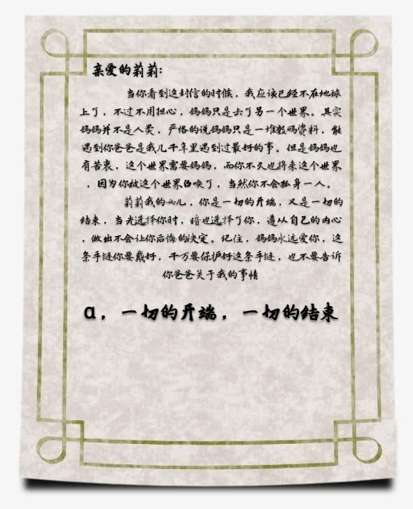 莉莉陷入沉思,灵光一现,04551,打开了这个盒子,里面有一封信,一串月光石手链