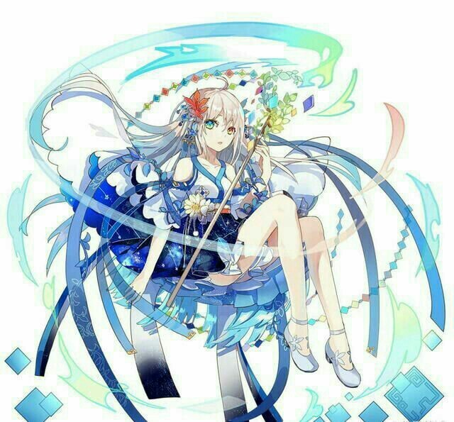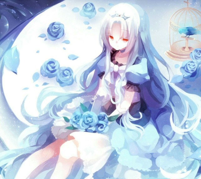 天蓝色长发眼眸是梅红色(平常是金色)白皙水嫩的肌肤樱花瓣的小嘴美丽优雅堪称妖孽。