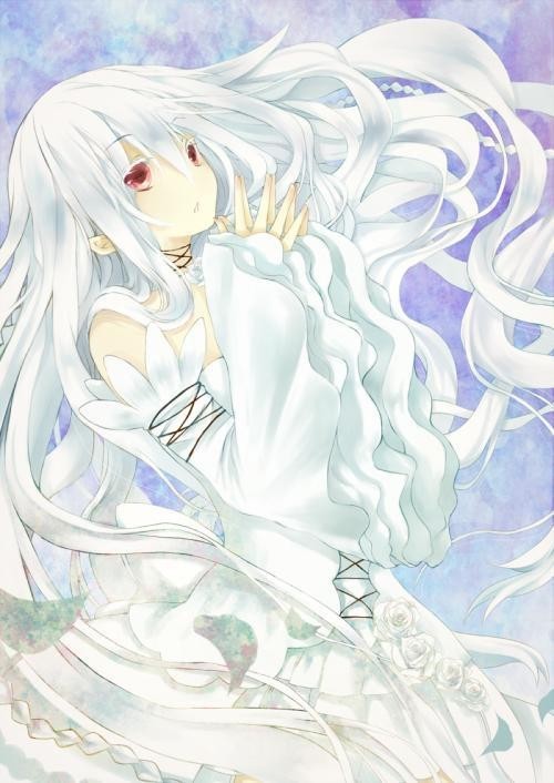 紫幽雪银色长发眼眸是天蓝色白皙水嫩的肌肤樱花瓣似的嘴美丽优雅堪称妖孽。