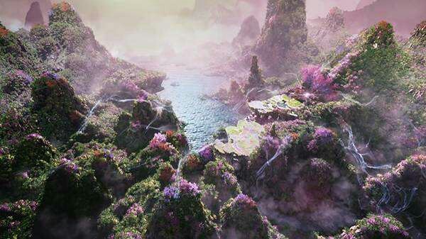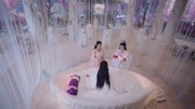 水滴从地面升起,深深涌入百花宫中,汇聚成一片雪花;不一会儿,形成一朵花的样子,分裂成了两片,一片为冰花,一片为霜花。