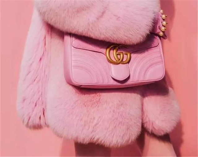 提着一个粉色的包包