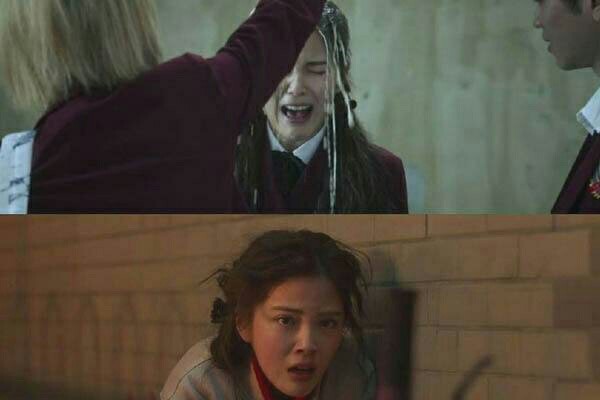 易遥停下来看着一群人围着一个女生还把奶茶到在那个女生头上