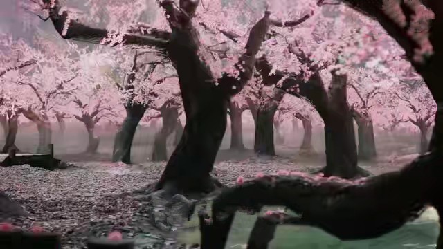 所有的桃花花瓣汇聚在一起,形成了一个漩涡把你包围在里面。