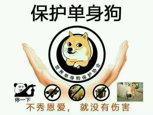 现在,我想让国家保护一种“动物”建立“世界单身狗保护协会”。九个字:不秀恩爱,就没有伤害。