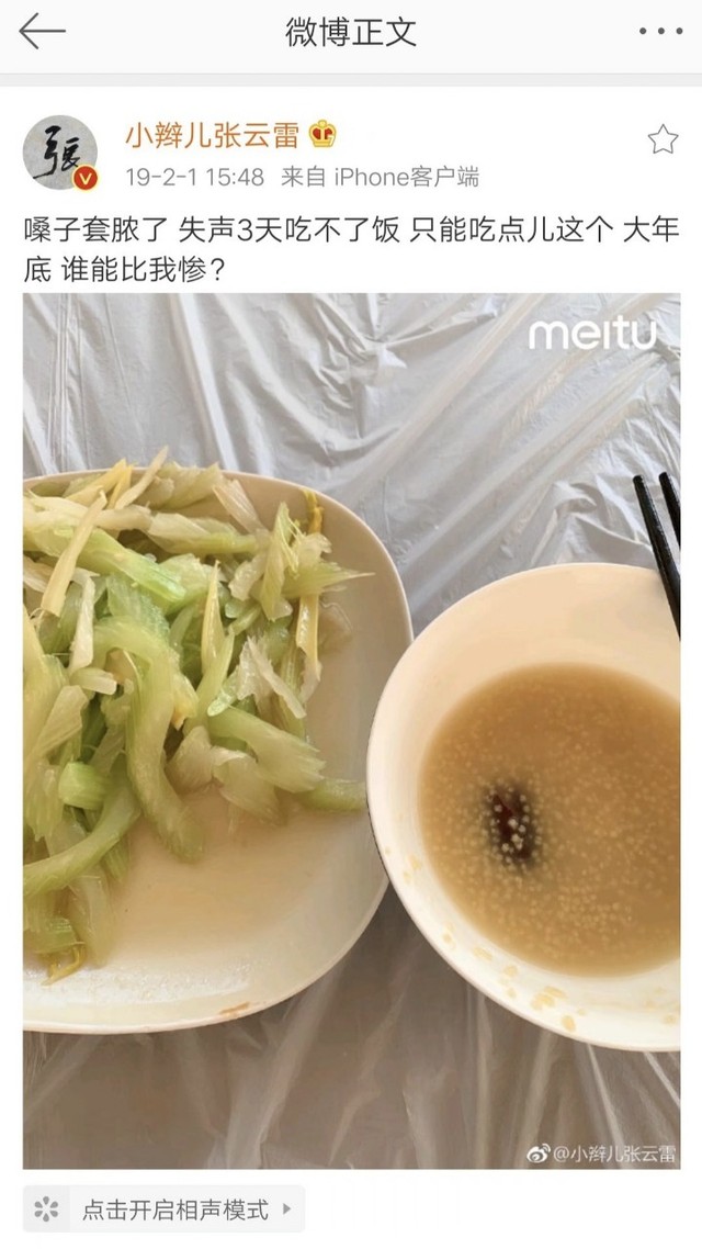 在家人的精心照顾下,张云雷的嗓子终于能出点声了,但还是有点沙哑厚重