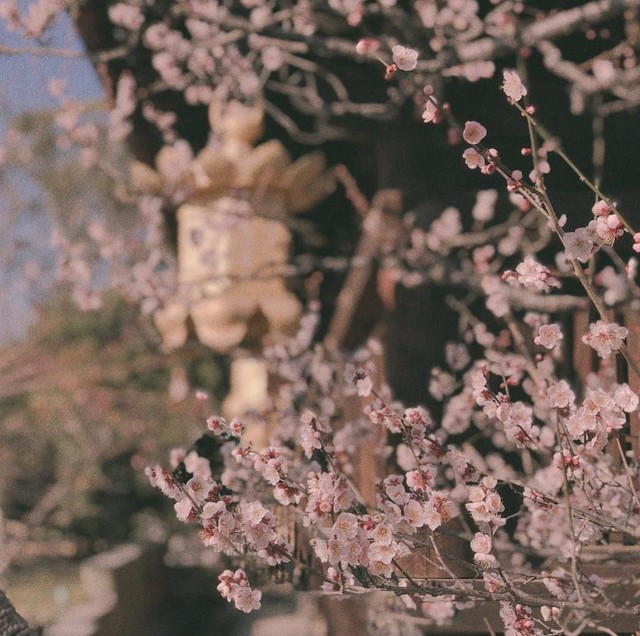 微风拂过,满园的桃花飘落而下,在这飞舞的花瓣中,小男孩和小女孩相视一笑。