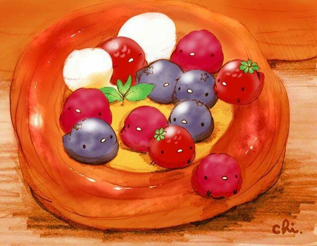 樱樆子递给陈思思一些草莓和蓝莓