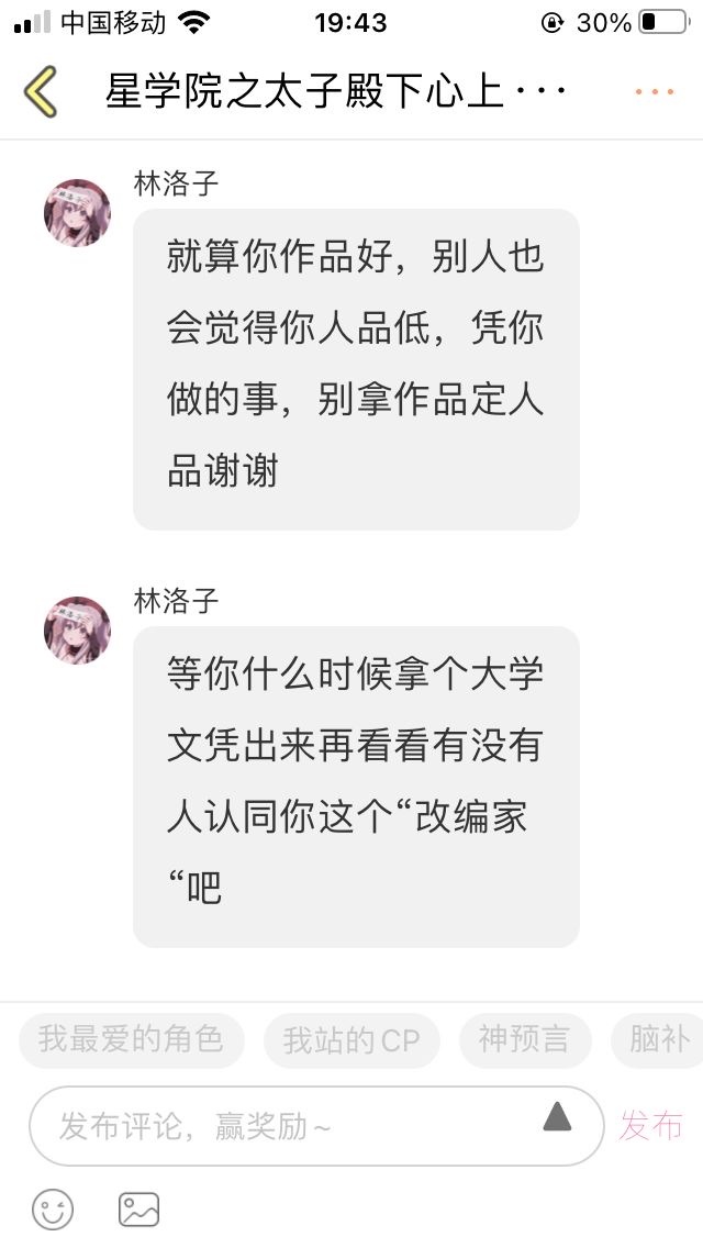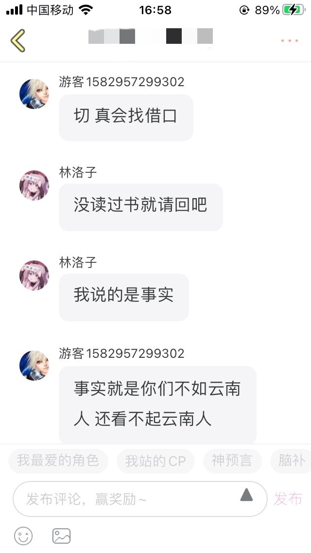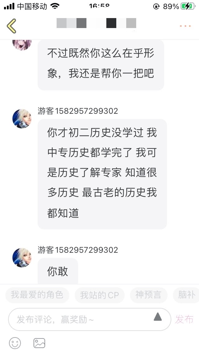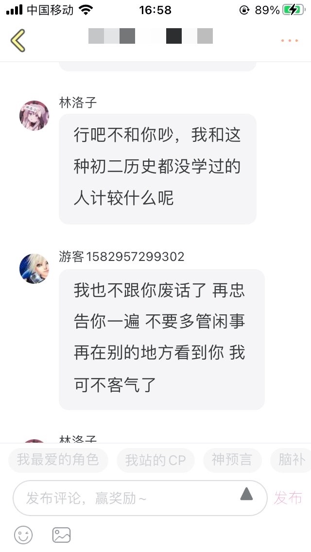 本来他来我这“鼓励”我我还是挺开心的,但一翻他动态却看见这段对话,我看不过就说了几句